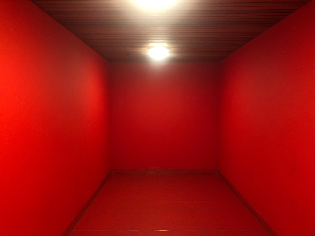 Deze foto geeft weer hoe ik mijn scriptie benaderen wil. Het is een foto van een hoek in een vreemd ontworpen gebouw aan het spoor in Amsterdam. Waarom zijn de muren rood? Waarom hebben de bewoners het niet ingericht? Sekswerk wordt momenteel vormgegeven als een tussenruimte, net als hier.